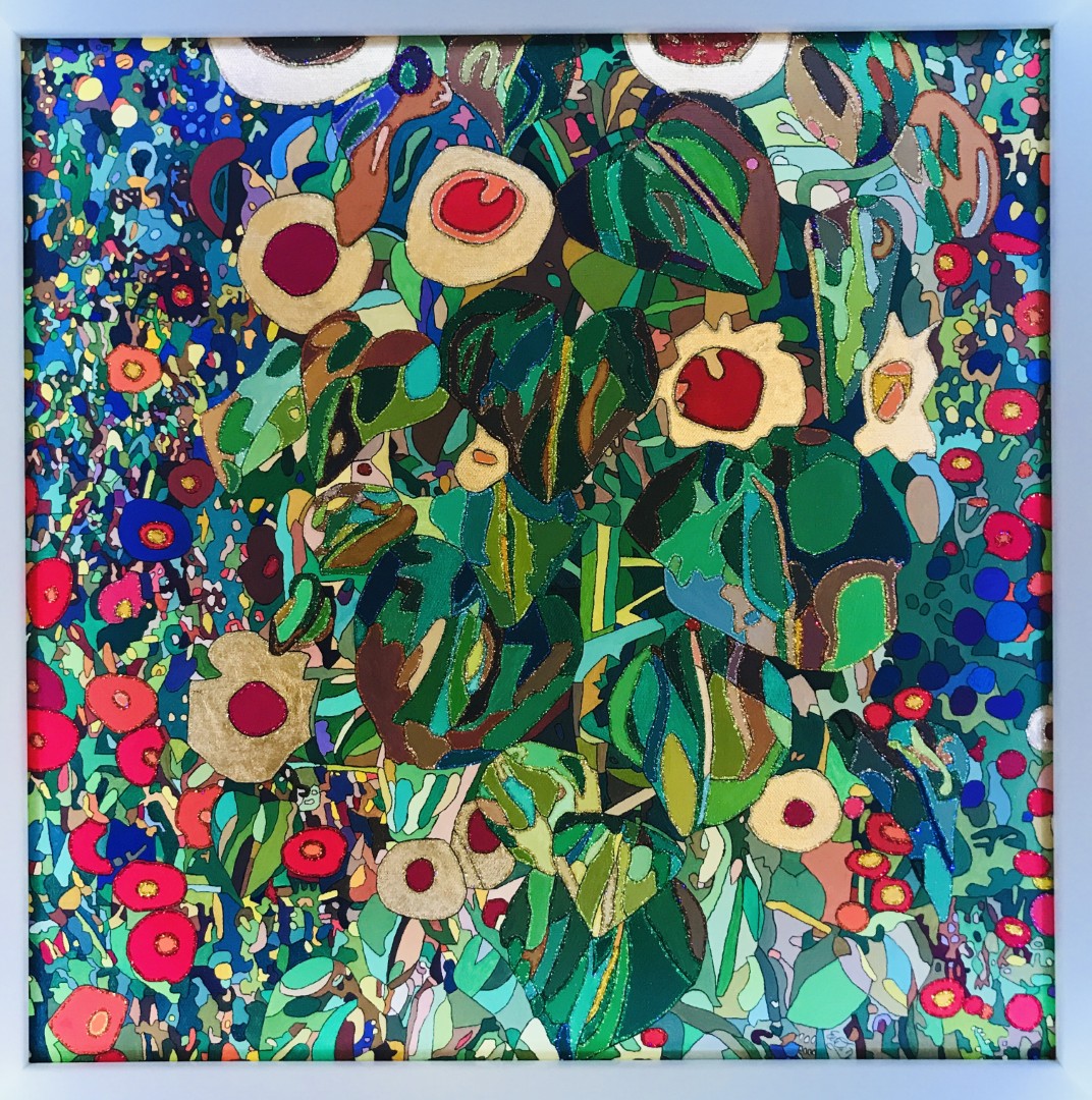 Galerie zum Bild „Bauerngarten Adaption (G. Klimt)“, 60 x 60 cm, Öl auf Leinwand, 2018