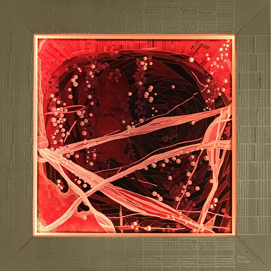 The starting point for the painting „Under the Ice“ is an event that is a taboo subject in our society, but which, when looked at more closely, happens again and again in many similar cases, especially today, at Corona time. Life demands decisions. Decisions have consequences for the person who makes them, for those who love him and for the subject of the decision, regardless of whether the result of the decision was intentional, unintentional or made with good intentions. I do not want to evaluate the motive of the decision, but the picture begins precisely with the result of the decision and raises the question: What is „guilt“, does it ever end? Can one repress a participation in decisions whose consequence is the prevention or ending of life? Does one pack these emerging feelings under ice, in cold and darkness, running the risk of ice thawing and thus making visible what should better remain hidden?