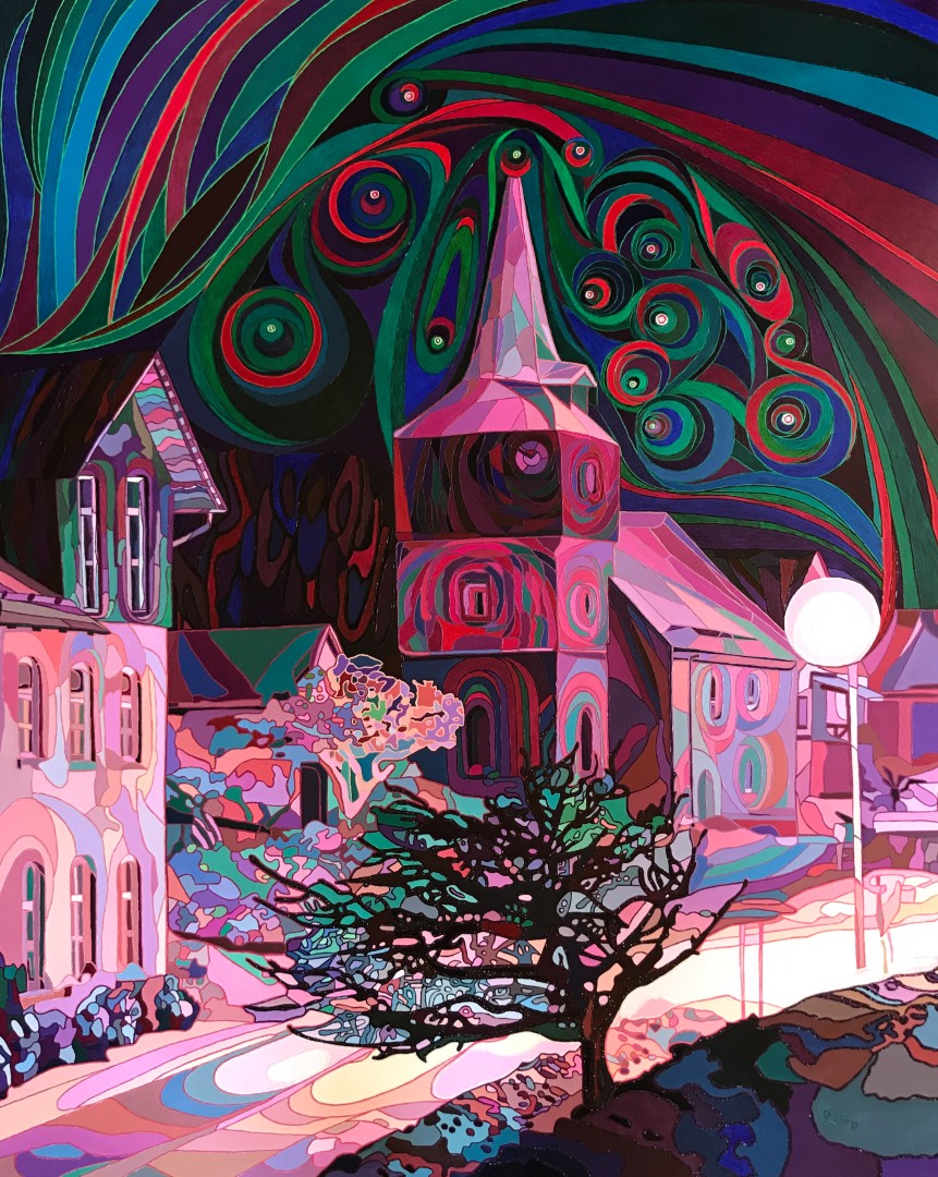 Galerie zum Bild „Sleepless – Polarlights only for me“, 100 x 80 cm, Öl auf HDF, 2019